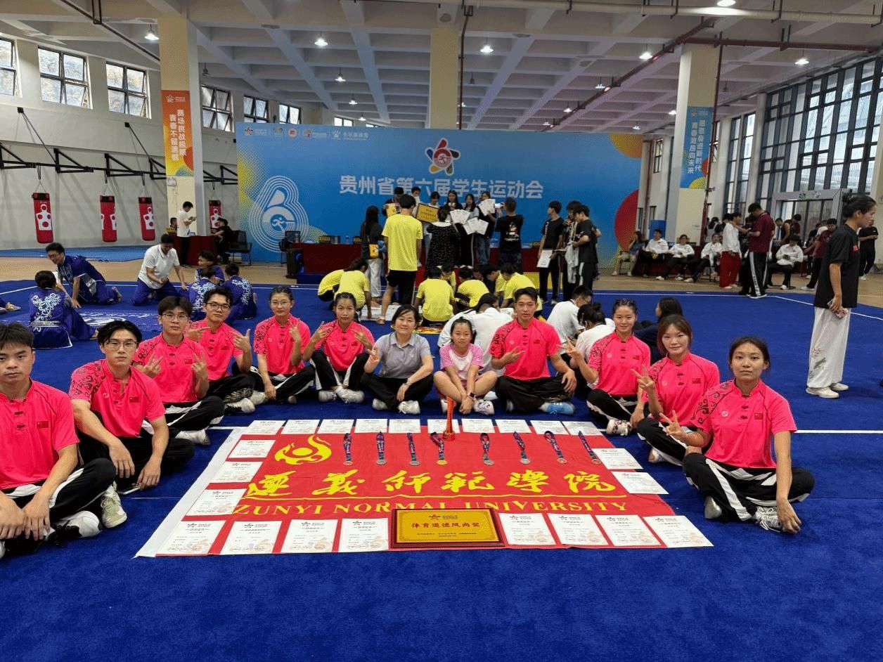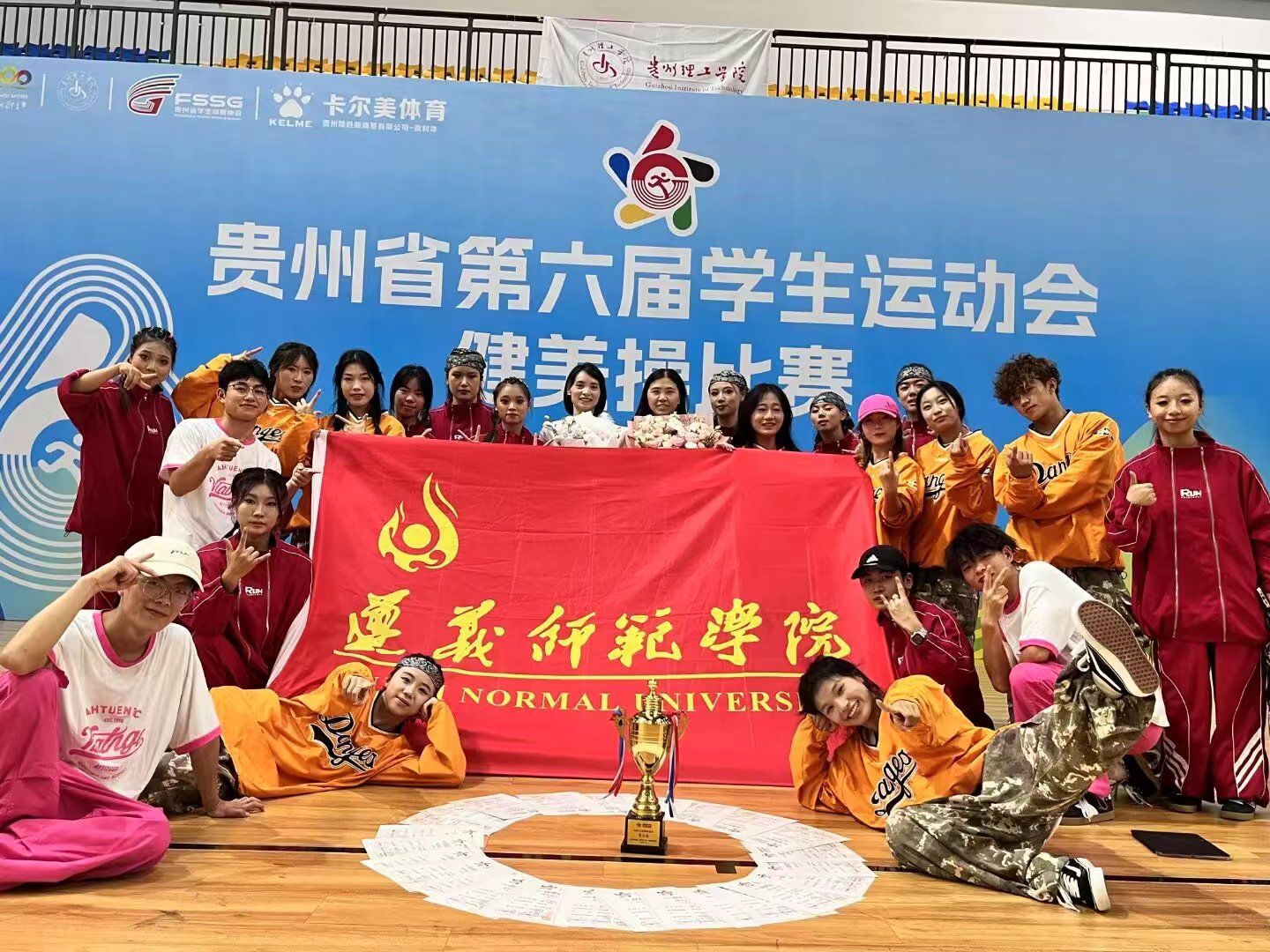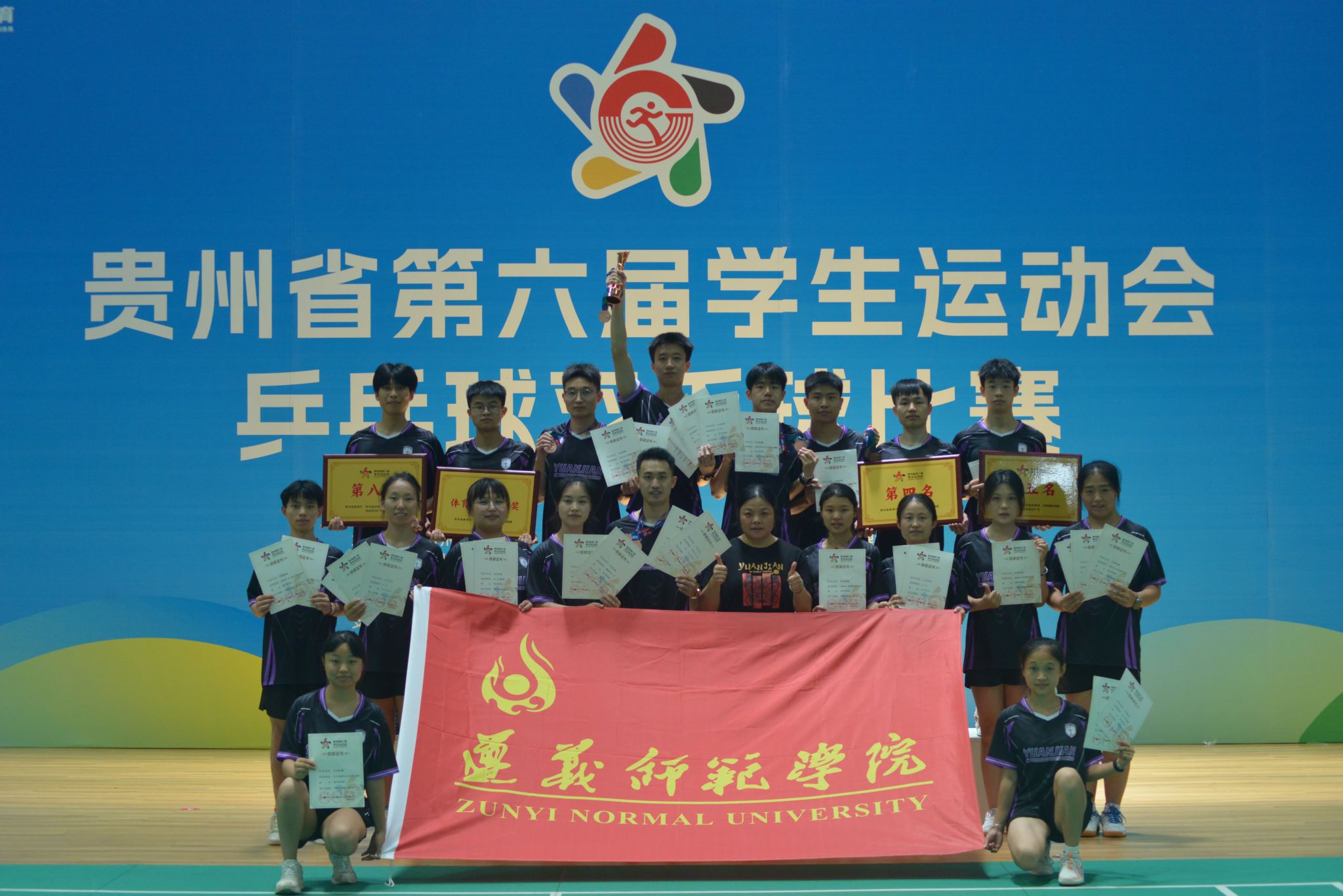 在贵州省第六届学生运动会中,遵义师范学院代表团获大学乙组(体育专业组)团体总分第4名,仅次于贵州师范大学、贵州大学、贵州医科大学的高水平运动队,其中,武术、健美操、乒乓球项目获团体总分第3名,为学校赢得了荣誉。