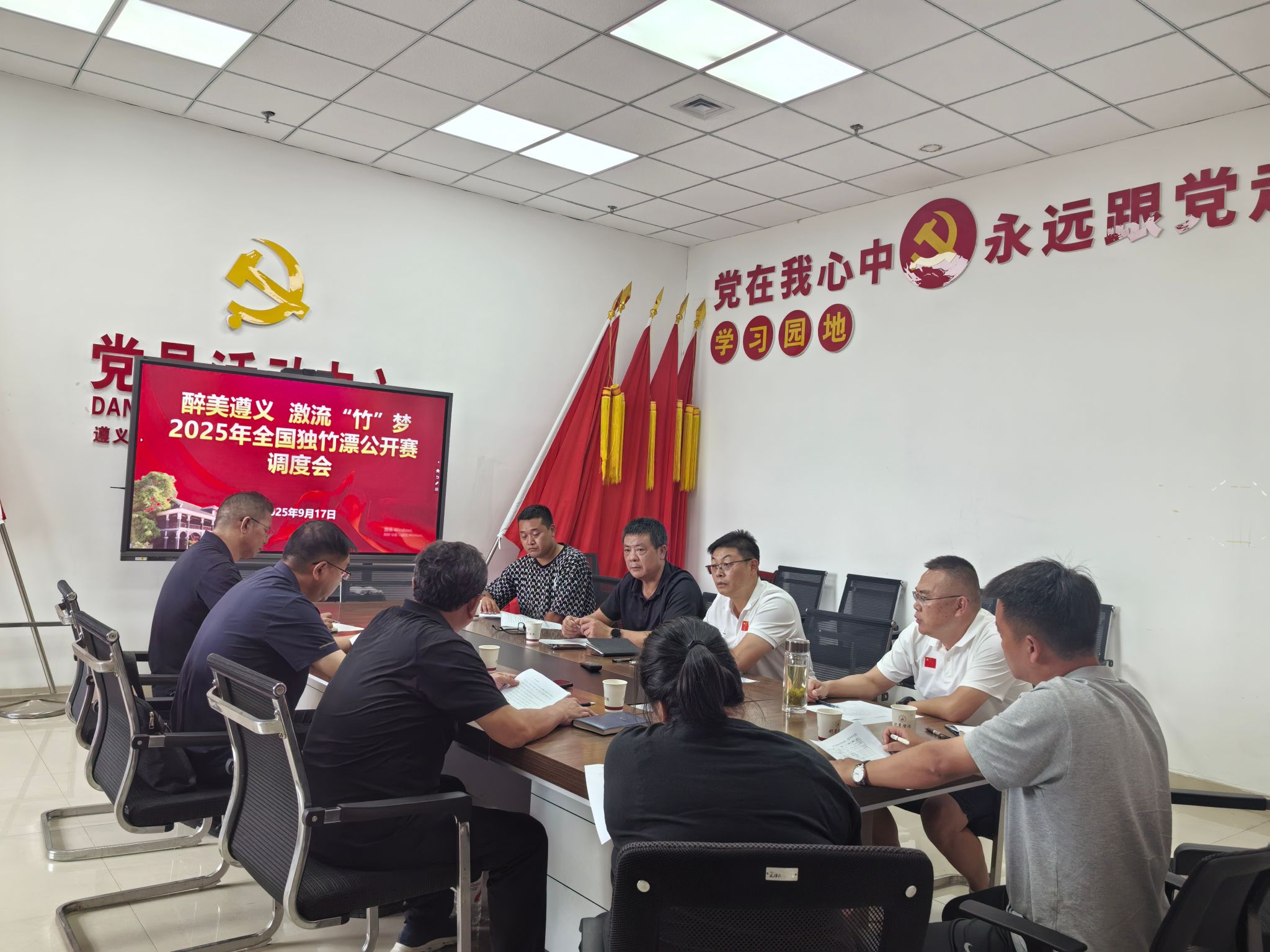 会上,遵义师范学院体育学院党总支书记苏近阳就2025年全国独竹漂公开赛赛前准备及赛事期间所需交通、医疗、安全以及场地设施保障协调工作向在座人员进行了通报。与会人员分别就赛事裁判队伍组建、志愿者培训、参赛队伍报名情况、比赛器材采购、场地设施设备搭建与规范、白鹭湖公园商户协调、宣传工作等交换了意见。