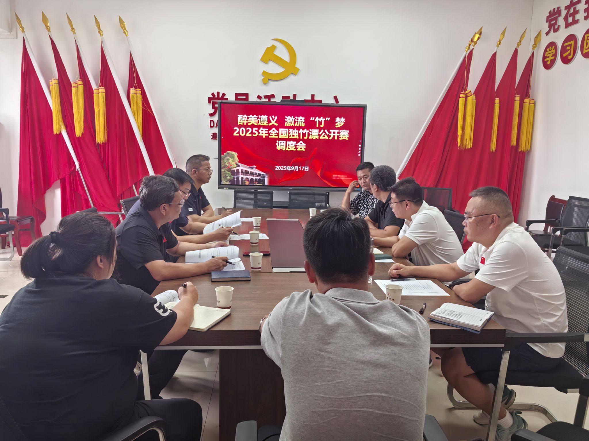 在听取与会人员的汇报后,遵义市教育体育局副局长袁宏肯定了遵义师范学院体育学院在此次赛事筹备中作出的努力。他强调,独竹漂作为遵义本土发源的民族体育项目,遵义能够承接此次赛事,是进一步推动本土独竹漂项目发展的良好机遇,各单位、各部门务必协调对接好赛前、赛中、赛后各项工作。为确保此次赛事顺利进行,袁宏要求各单位一是提前规划参赛队伍行动路线,完善比赛路线、观众区域、标识标牌设置等;二是完善竞赛队伍的组织、安排、接待工作,确保参赛队伍后勤保障到位;三是加强赛事全过程宣传工作,积极主动对接各大官方媒体,加大宣传效果,推动遵义体旅融合更好发展;四是重视赛事安全工作,完善配备水上救援团队、救生设施、医疗保障设施等,确保参赛队伍食品安全;五是做好志愿者培训、赛事场地游乐设施规范等工作,成立赛事专班集中办公,确保赛事安全、规范、有序运行。