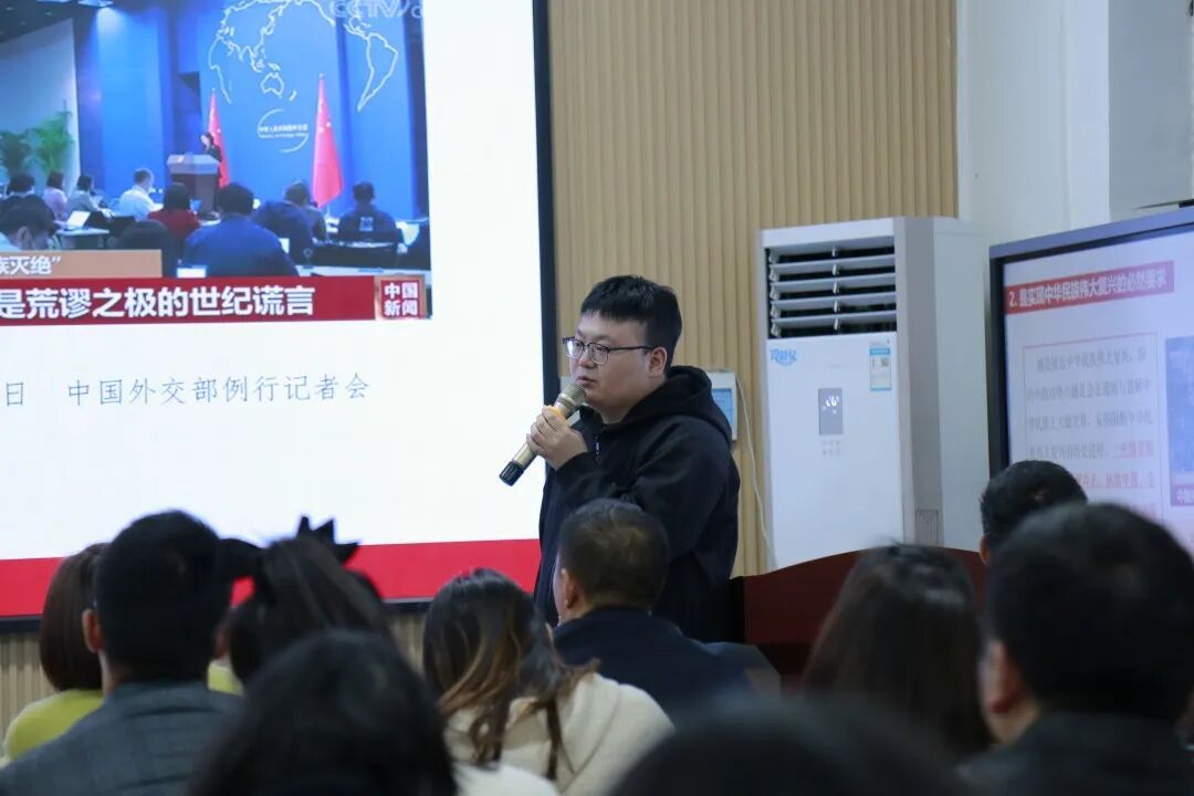 宣讲中,阳序言以《铸牢中华民族共同体意识》为题,从“什么是铸牢中华民族共同体意识?”“为什么要铸牢中华民族共同体意识?”“怎样铸牢中华民族共同体意识?”三个方面分别进行讲述,宣讲主题鲜明、思想深刻、内涵丰富,让与会教师更加深刻理解铸牢中华民族共同体意识工作的重要性。