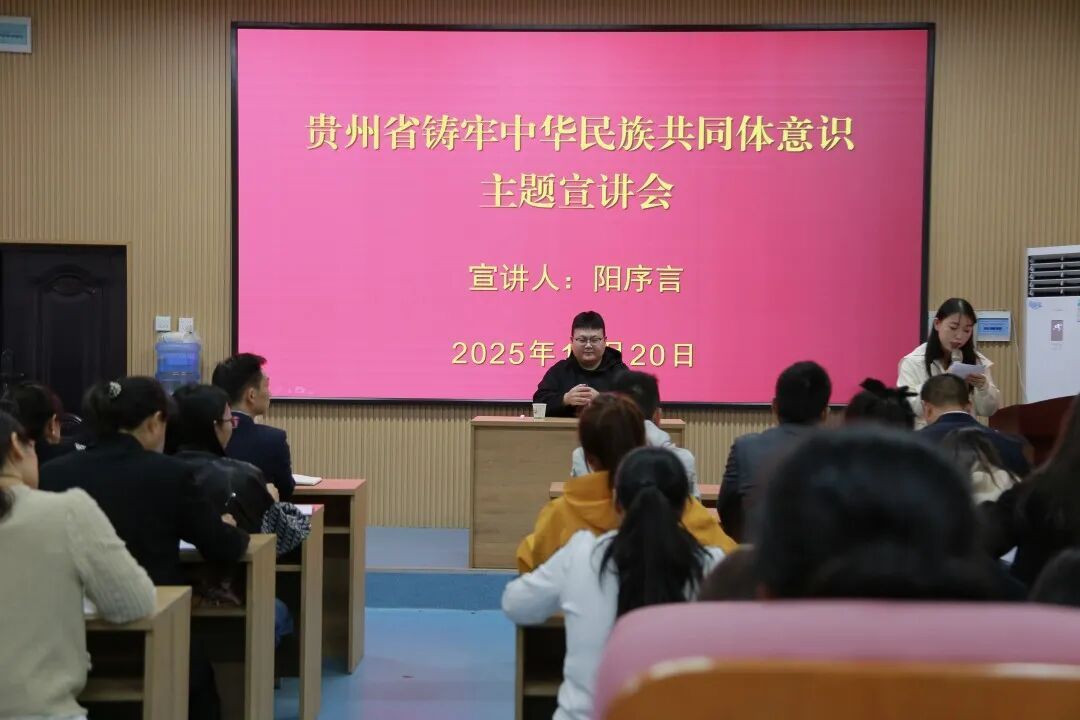 2025 年 10 月 20 日,贵州省铸牢中华民族共同体意识宣讲团成员走进播州区第二小学,为全校100余名教师开展专题宣讲活动。遵义市铸牢中华民族共同体意识实践中心主任王家富、贵州省铸牢中华民族共同体意识宣讲员、遵义师范学院历史文化与旅游学院讲师阳序言、播州区民宗委相关负责人参与活动。