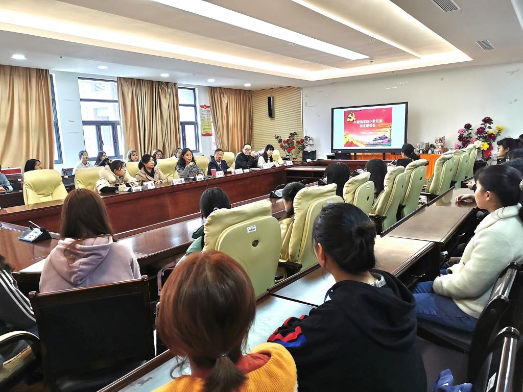 为进一步体现学院对少数民族学生的关爱,全面了解少数民族学生在校的思想、学习、生活情况,帮助他们及时解决困难,按照学生工作处相关工作要求,外国语学院于11月6日中午在执文楼415会议室召开少数民族学生代表座谈会。本次座谈会由外国语学院党总支书记雷芸主持,副院长杨司桂、高翼、关工委副主任申茂庆、学生科科长李睿等同志出席会议。外国语学院251名少数民族学生中的40名代表参加了此次座谈会。