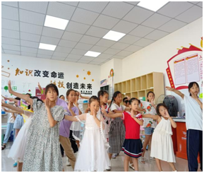 为促进孩子们的和谐发展,提高他们身体的协调能力,增强耳朵对节奏的敏感性,提升他们的表演能力,小邱老师教授孩子们舞蹈课,丰富了社区孩子们的趣味课堂,小小的身体活动有助于身心发展。课堂开始,小朋友们按照小邱老师的指示有序站好,在授课的过程中,小邱老师数着节拍,耐心地教小朋友们舞蹈动作,并对他们的动作加以指正,小朋友们认真聆听小邱老师的讲解,并完成舞蹈动作。