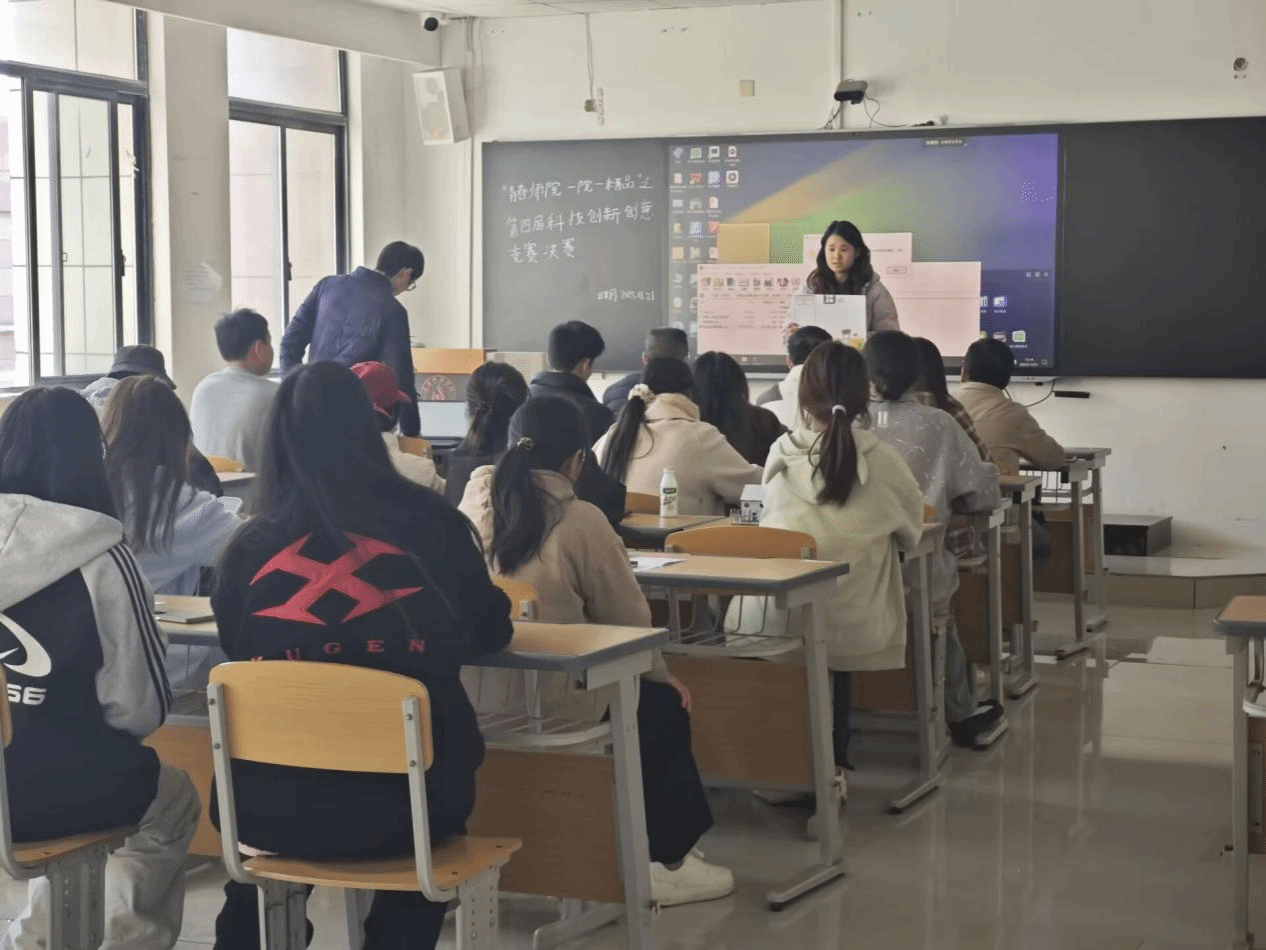 11月21日,由校团委主办、物理与电子科学学院大学生科学技术协会承办的“青春师院·一院一精品”之第四届科技创新创意竞赛决赛在执矩楼432教室举行。大赛以“智能添彩新时代,科技赋能新生活”为主题,旨在提升学生的协作能力与综合素质,丰富科普教学资源,激发学生的创新潜能与实践热情。