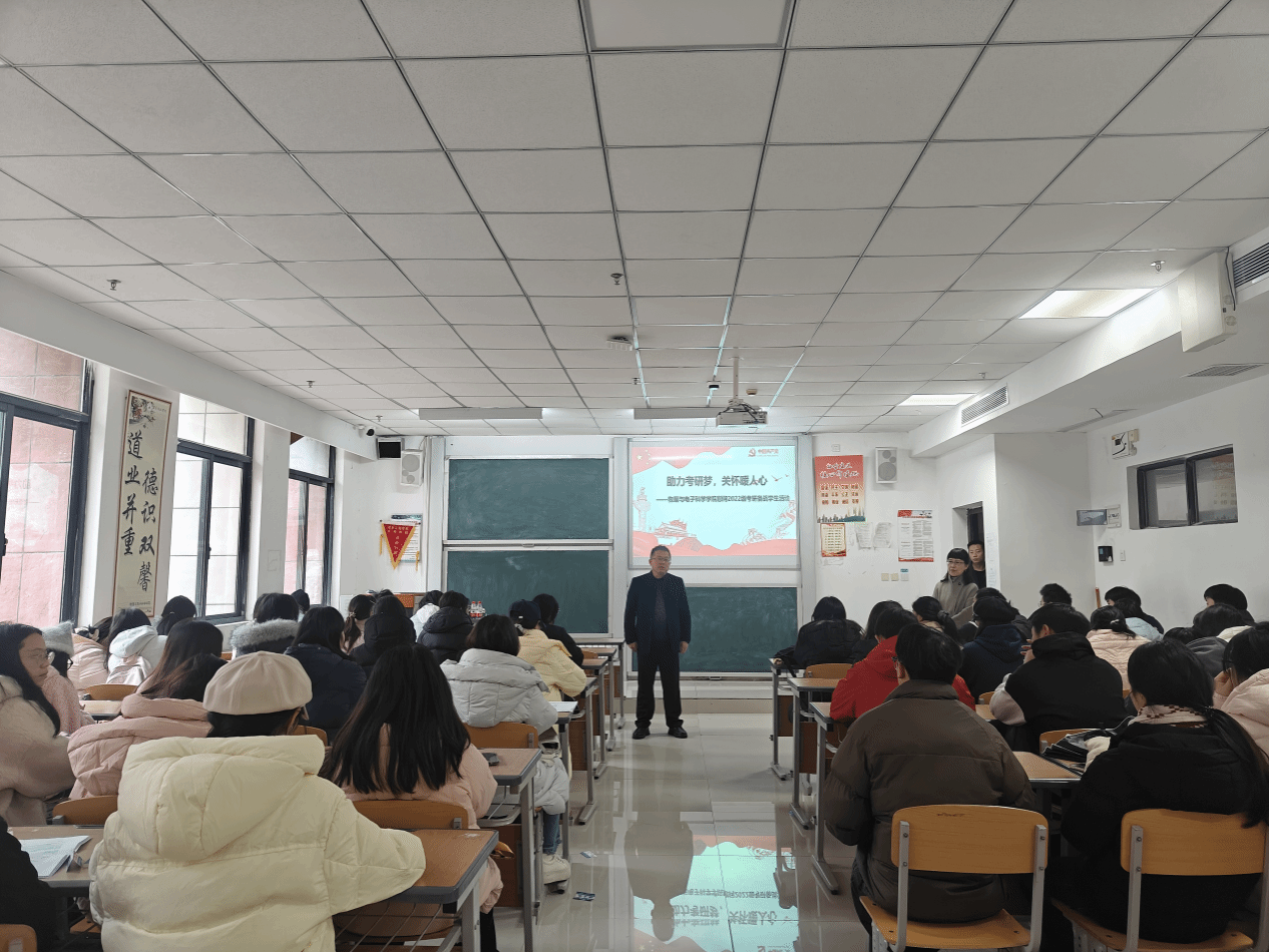 学院杨秀德院长结合自身经历,从专业视角为学子们送上实战指导。他指出,考研不仅是知识储备的比拼,更是意志品质的淬炼,这段备考历程本身就是宝贵的成长财富。他勉励同学们在冲刺阶段要合理规划复习时间,精准突破核心难点,将专业知识学深悟透;同时提醒大家做足各项准备,从容应考,充分展现出物电学子的扎实功底与昂扬风貌。