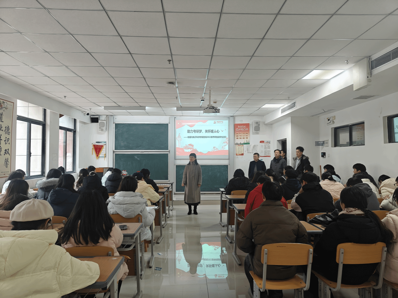 寒冬送暖,情系研途。在2025年全国硕士研究生招生考试进入最后冲刺的关键节点,12月3日,物电学院举办考研备战学生专项慰问活动。学院党总支吴英书记、杨秀德院长带领领导班子成员、辅导员及教师代表,与考研学子齐聚一堂,以真挚的关怀驱散冬日寒意,用殷切的嘱托凝聚奋进力量。