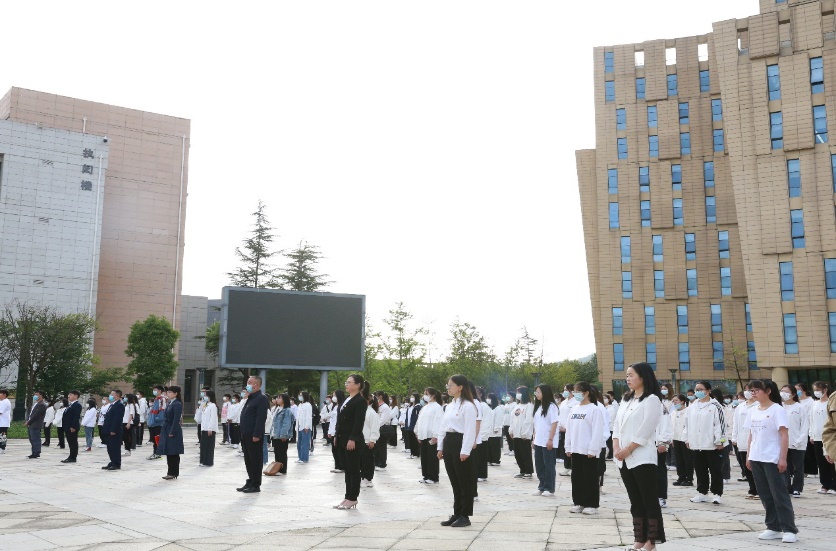 升旗仪式完毕后,学院党总支吴英书记发表讲话,她告诫同学们,青春由磨砺而出彩,人生因奋斗而升华,同学们要树立崇高的理想信念,刻苦学习、全面发展,敢于担负起新时代大学生的使命与责任,在改革开放和现代化建设的伟大实践中经风雨、见世面、长才干,为实现中华民族的伟大复兴贡献自己的青春、智慧和力量!