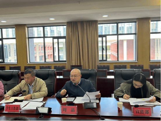 为深入贯彻落实党的二十届四中全会精神和习近平新时代中国特色社会主义思想,全面落实学校第三次党代会精神,2025年11月12日下午2:30,学校在行政楼418会议室召开2025年秋季学期第二次学生工作例会。会议主题是认真抓好学生安全工作。学校党委副书记周晶出席会议,党委宣传部、团委、招生与毕业生就业指导处、后勤管理处、学生资助管理中心、保卫处、网络信息与现代教育技术管理中心、心理咨询中心等部门主要负责人、各二级学院党委(党总支)书记或副书记和金科物业负责人参加会议,会议由学生工作部部长吴廷强主持。