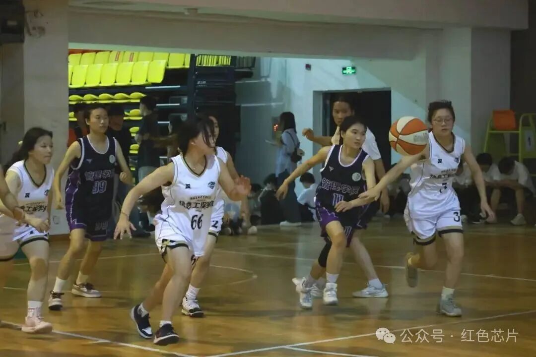 赛场上,信息工程学院女篮队员配合默契,防守端卡位精准。一记记巧妙传球撕开防线,一次次果断投篮命中篮筐,比分始终保持领先优势。管理学院女篮亦不甘示弱,凭借顽强防守多次抢断反击,奋力追赶比分,展现出强劲的竞技精神。