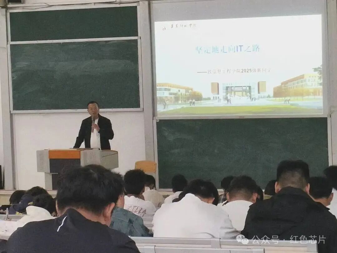 2025年10月18日,信息工程学院在执闳楼104开展2025 级新生入学教育系列思政大课,第五时由院长杨道平主讲,主题为 “坚定地走向 IT 之路” 。