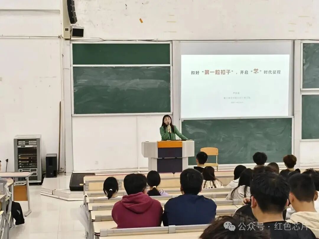 2025年10 月18日,信息工程学院在执闳楼104 教室举办2025 级新生入学教育系列思政大课。第六讲由学院党总支副书记罗筱娟主讲,主题为 “扣好‘第一粒扣子’,开启‘芯’时代征程” 。