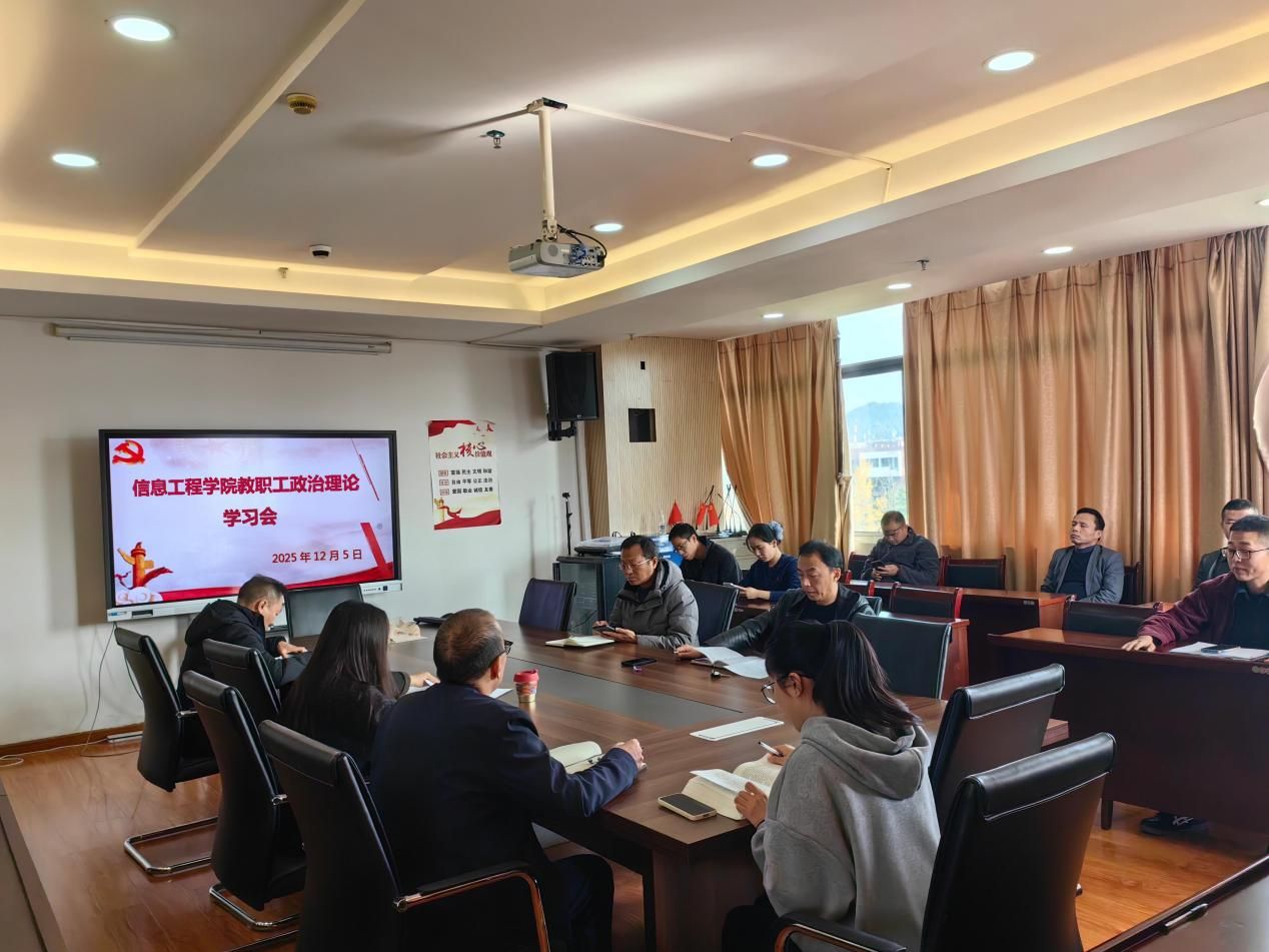 为深入学习贯彻习近平新时代中国特色社会主义思想,切实提升教职工的政治素养和理论水平,2025年12月5日,信息工程学院在执矩楼310会议室召开教职工理论学习会,本次学习会由学院党总支书记唐晔主持,全院教职工参加。
