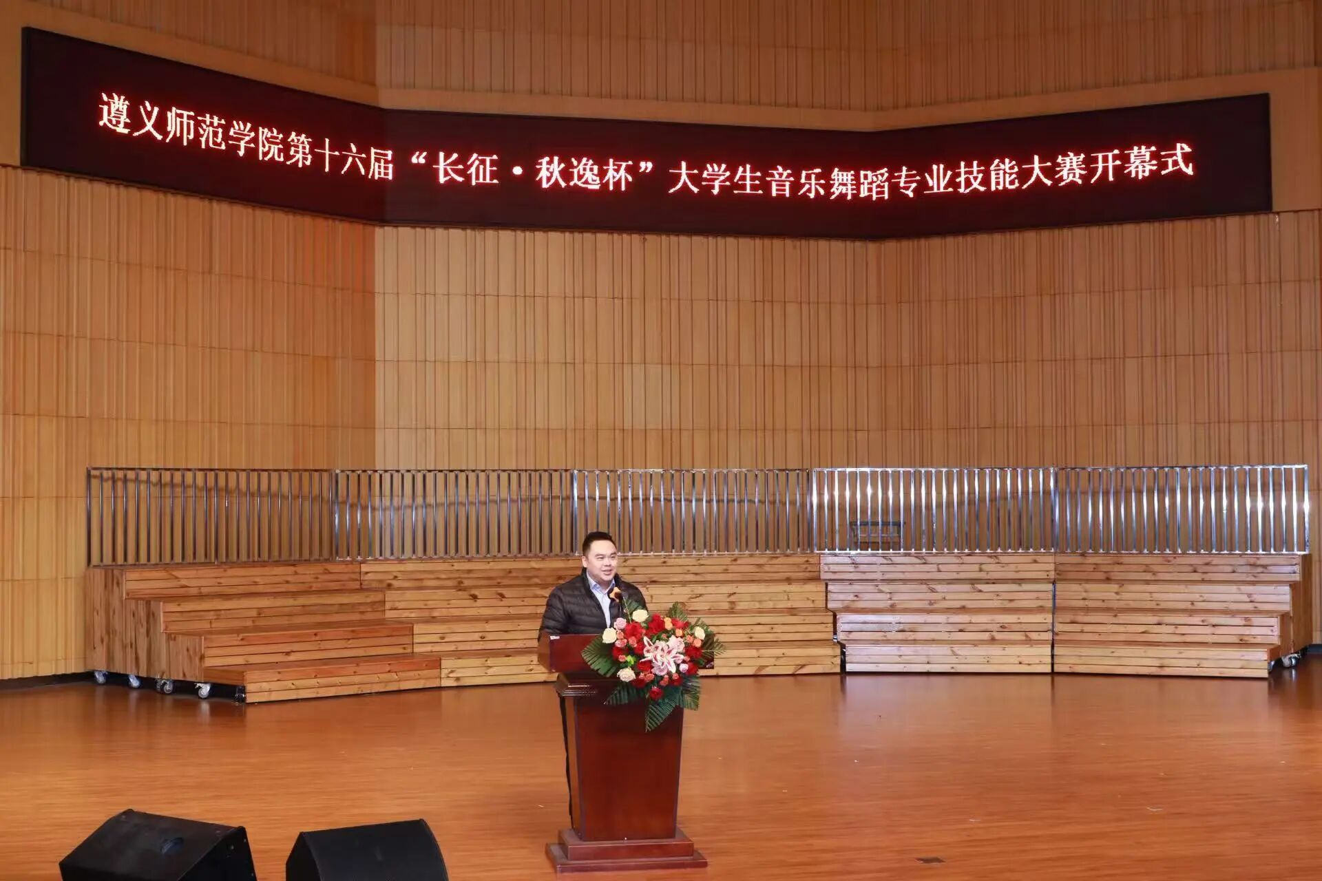 最后音乐与舞蹈学院党总支副书记安华文宣布:遵义师范学院第十六届“长征·秋逸杯”大学音乐舞蹈专业技能大赛开幕!