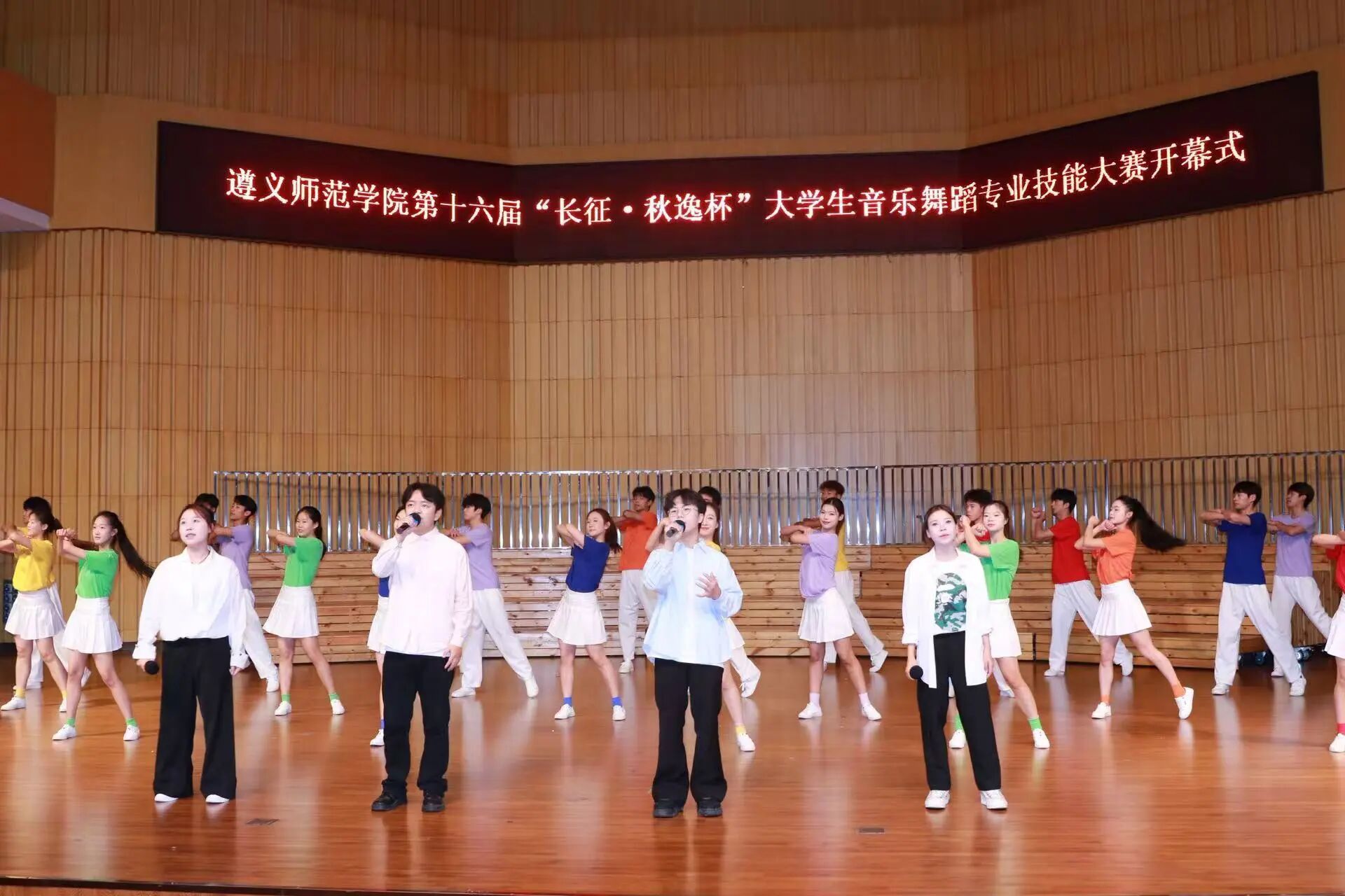 秋高气爽,艺韵华章。 2025 年11 月3 日,遵义师范学院第十六届“长征·秋逸杯”大学生音乐舞蹈专业技能大赛在长征音乐厅拉开序幕。由音乐与舞蹈学院实践教研室主任赵楠老师主持,开幕式在优美的舞蹈《迎风起跑》中拉开序幕,音舞学院全体师生齐聚一堂, 共同见证这一乐舞盛典的开启!
