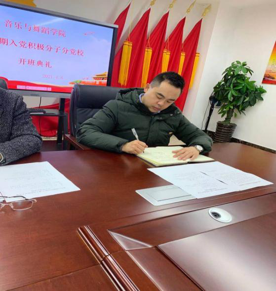 紧接着,安华文副书记(主持工作)做音乐与舞蹈学院分党校开班仪式讲话,安书记说:参加入党积极分子培训,对在座的各位同学来说不仅是一次难得的机会,而且也是政治生活中的一件大事,更是在人生道路的紧要关口迈出的一步,希望大家珍惜这次学习党史的机会。