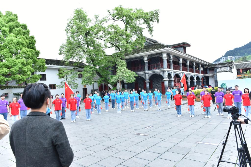 2021年4月19日,为庆祝中国共产党成立100周年,结合党史学习教育,音乐与舞蹈学院在学校党委宣传部及学院党总支指导下,由我院青年教师范福芹、陈文君两位老师带领学生党员、入党积极分子和青年团员40余名在遵义会议会址红楼前及学校“百年广场”深情献唱《唱支山歌给党听》。音乐与舞蹈学院师生学党史、唱红歌,用歌声表达对党的无限热爱。