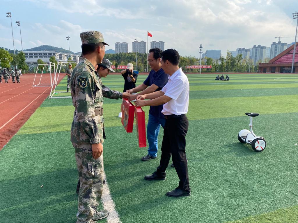 在军训场地上,党总支副书记(主持党建工作)安华文向学生们表示了亲切的问候,希望他们在军训生活中,勇于面对困难,更好的历练自己,并在四年的学习生活中,能有所收获!院长刘云松贴心的向新生们介绍了执韵楼的区域分布以及分管各个事务的老师,以便学生们遇到问题及时和老师取得联系,并叮嘱了学生们中秋假期的安全事宜。