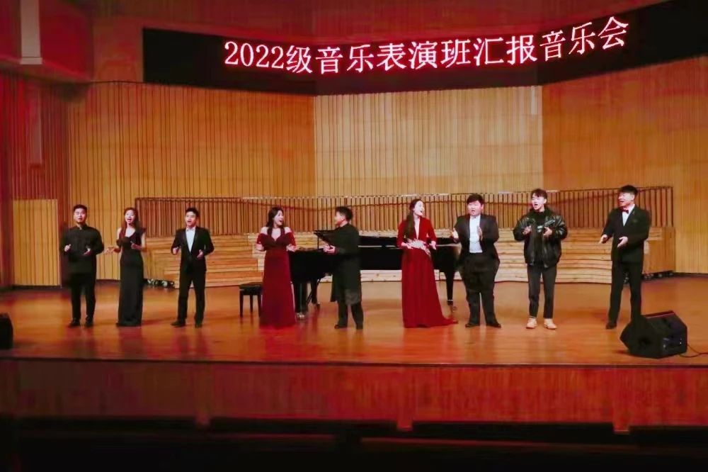 青春如梦,畅想未来。12月5日晚上七点,音乐与舞蹈学院2022级音乐表演班“音乐之梦,青春之歌”班级音乐会在执韵楼长征音乐厅拉开帷幕。莅临音乐的领导和老师有音乐与舞蹈学院党总支副书记范星佑、副院长李应波、学生科科长(团总支书记)赵青、钢琴教研室主任肖汶妍、谢皓珀、声乐教研室刘莉、田乙、孙婷、辅导员陈盼盼。