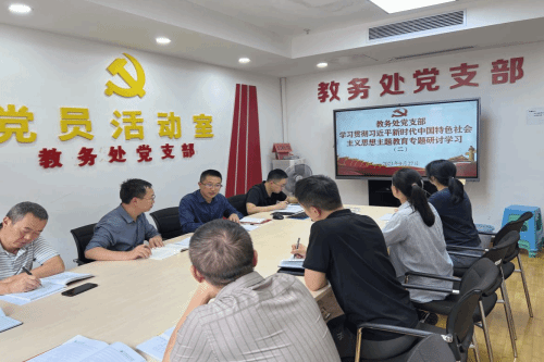 2023年9月27日上午,教务处党支部在行政楼227会议室,召开学习贯彻习近平新时代中国特色社会主义思想主题教育专题学习研讨会。教务处党支部副书记秦进主持会议,教务处党支部全体党员参加。