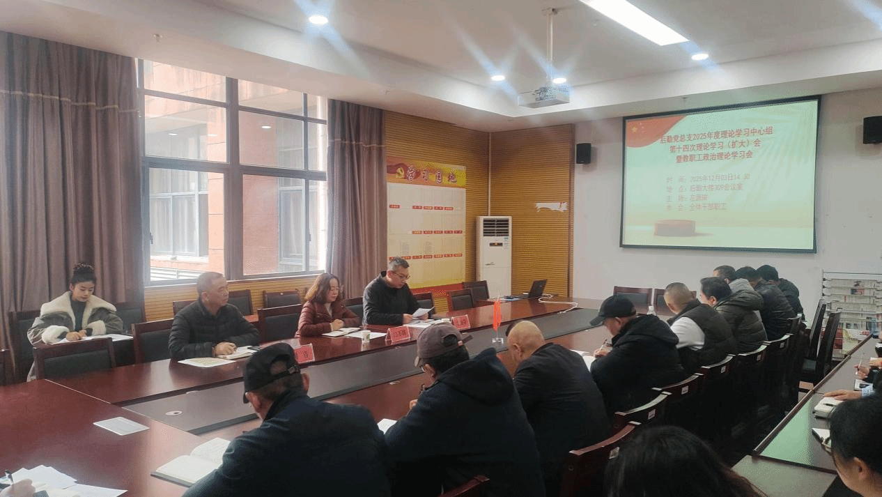 2025年12月3日下午,后勤管理处党总支在后勤大楼309会议室召开2025年理论学习中心组第十四次理论学习(扩大)会暨教职工政治理论学习会,后勤管理处处长左源岸主持会议,学校党委委员、副校长闫万珺列席指导,后勤全体教职工参加会议。