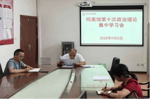 9月5日,档案馆党支部召开党员大会,组织全体党员开展第十次政治理论学习会,会议由支部书记郑有成主持,全体党员参加学习。