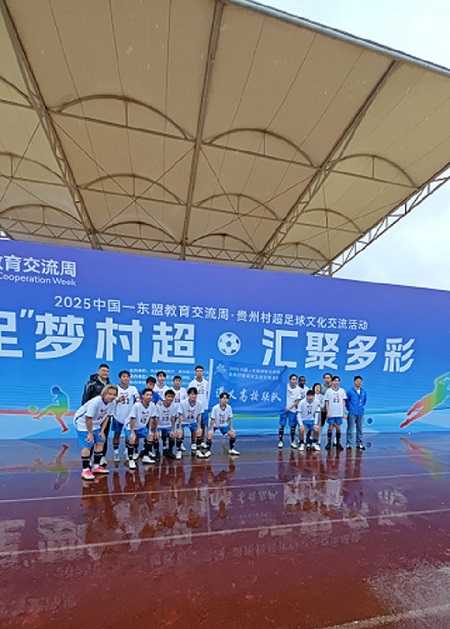 2025年9月24日至27日,2025中国—东盟教育交流周·贵州村超足球文化交流活动在贵州工业职业技术学院隆重举行。遵义师范学院、贵州航天职业技术学院选派15名中外学生组成遵义高校联队参赛,经过四轮激烈角逐,以三胜一负的优异战绩荣获第二名,充分展现了遵义高校学子顽强拼搏、团结协作的精神风貌和良好的体育竞技水平。