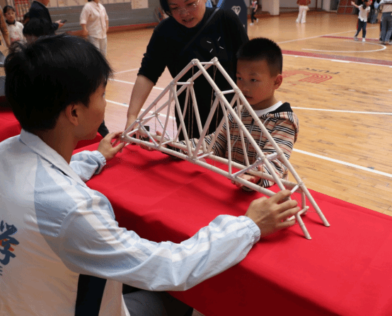活动现场设置多个科技体验展区,工学院组织土木工程科学技术协会、机电自动化协会、人工智能和机器人协会等学生团队精心设计内容;桥梁模型展区生动讲解结构原理,矿石标本展示揭开地质奥秘,机械仿真创新作品呈现设计巧思,人工智能与机器人互动则让孩子们亲手操控传感器,感受科技魅力。家长与孩子共同参与,互动热烈,欢声笑语不断。