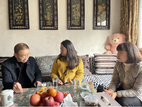 红色经典艺术教育示范基地主任王晶晶于2021年12月6日上午带领基地全体人员慰问退休干部李建春、贺斯跃两位老领导,在退休干部原红色经典艺术教育示范基地两位主任家中,王晶晶亲切地向两位老师嘘寒问暖,了解身体状况,感谢两位老领导为红色经典艺术教育示范基地教育事业发展所做出的贡献,希望两位老师积极建言献策,为遵义师范学院红色经典艺术教育示范基地教育事业发展贡献智慧和力量。并嘱咐老同志们要保重身体、乐观生活,继续一如既往地关心和支持遵义师范学院红色经典艺术教育示范基地教育事业工作。