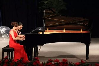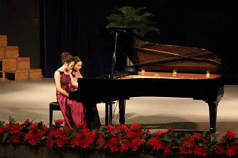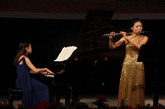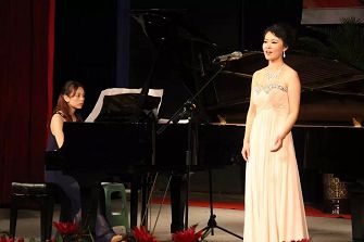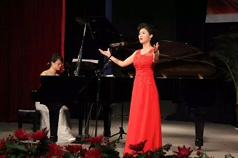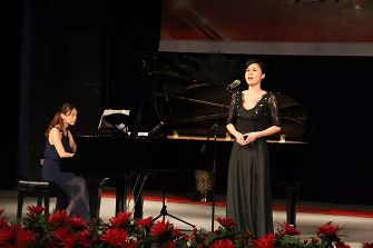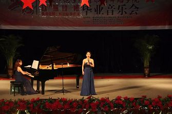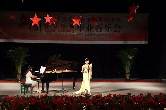 2015年5月6日晚7点,师从班丽梅老师的杨鑫慧、罗丹开始了他们的“慧质丹心”音乐会,他们合唱了一首红色经典歌曲《黄水谣》。