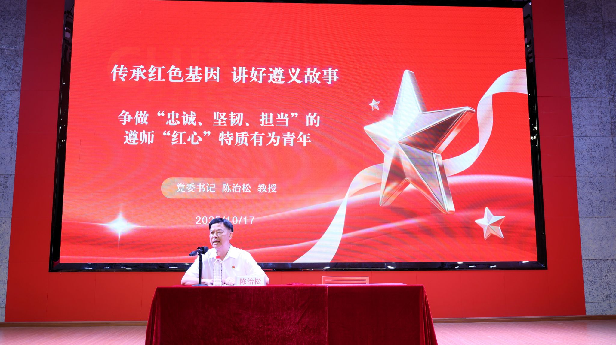 陈治松以“传承红色基因 讲好遵义故事”为主题,围绕立德树人根本任务,从“立大德、明公德、严私德”三个维度,深入阐释了新时代青年应具备的道德品质。他强调,教育的根本问题是“培养什么人、怎样培养人、为谁培养人”,要着力培养有理想、有道德、有文化、有纪律的时代新人,为党和国家事业发展输送可靠接班人。
