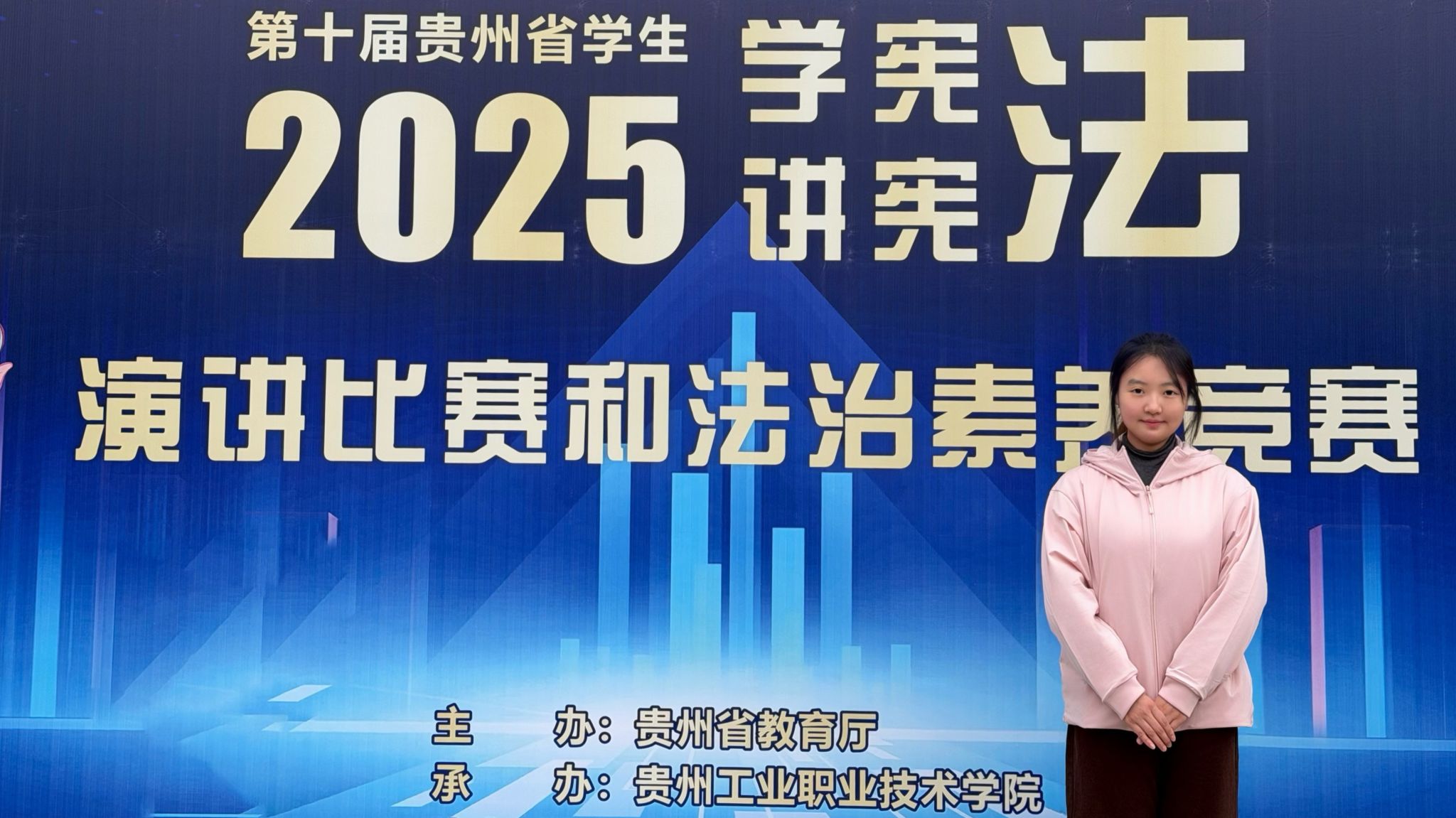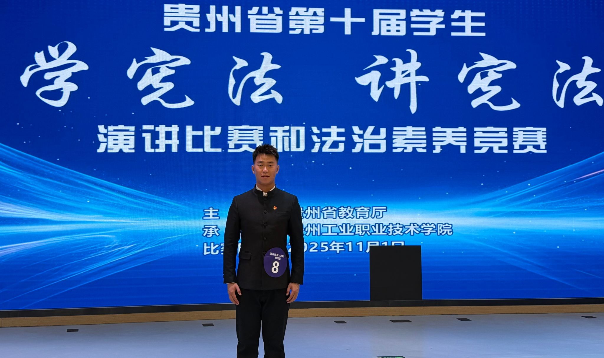 本网讯(团委) 11月1日,由贵州省教育厅主办的第十届全省学生“学宪法 讲宪法”活动省级决赛在贵州工业职业技术学院落下帷幕。遵义师范学院选派的两名选手发挥出色,人文与传媒学院2023级播音班学生朱兆麟、马克思主义学院2023级思政长征班学生陈文星分别在演讲比赛、法治素养竞赛中获二等奖,充分展示了法治教育的育人成果。
