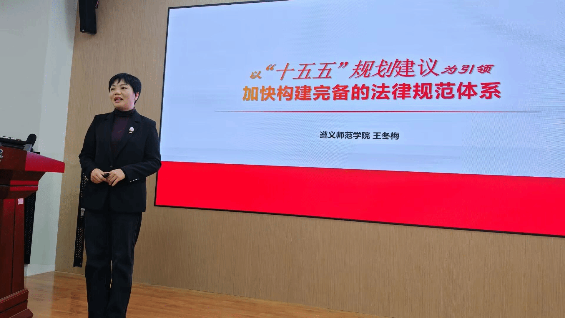 在思政课集体备课暨交流展示活动上。湖北师范大学马克思主义学院讲师陈智会、遵义师范学院马克思主义学院副教授王冬梅、黔南民族师范学院马克思主义学院副教授王耀媛、汉江师范学院马克思主义学院讲师庹婕、华中师范大学马克思主义学院讲师聂敏分别以《“十五五”规划建议为引领加快构建完备的法律规范体系》《全面从严治党是新时代党的建设的鲜明主题》《美好生活:从“向往”到“现实”的民生实践—如何理解不断实现人民对美好生活的向往》《坚持人与自然和谐共生》《中国式现代化的中国特色》为题进行教学展示。遵义师范学院马克思主义学院党总支书记王劲松、黔南民族师范学院马克思主义学院院长缪成长、汉江师范学院马克思主义学院副院长王君、华中师范大学马克思主义学院习近平新时代中国特色社会主义思想概论教研部部长郭明飞分别进行点评。