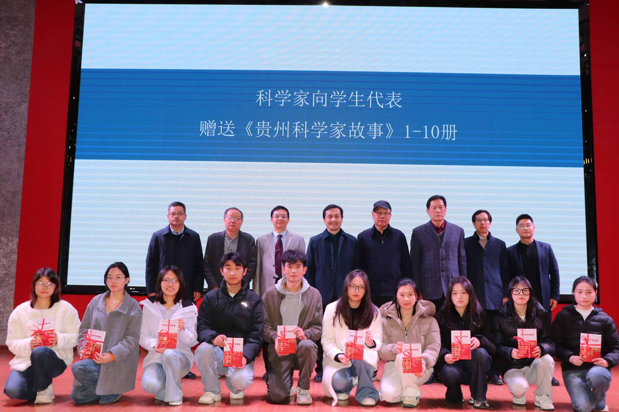 省老科协向学校图书馆赠送《贵州科学家传记丛书》1—5卷、《贵州科学家故事》1—10册,水稻专家、贵州省农业科学院水稻研究所二级研究员黄宗洪,医学科学家、贵州医科大学二级教授伍国锋向10名学生代表赠送《贵州科学家故事》1—10册。