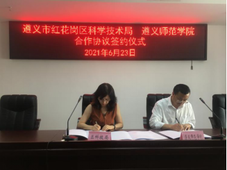 随后高智席处长、谢玲局长分别代表遵义师范学院、红花岗区科技局签订了“联合资金项目协议”。