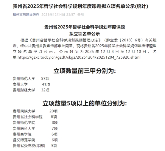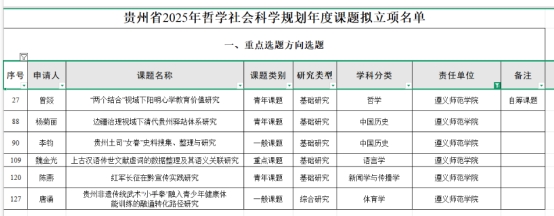 好消息:我院两项课题获得贵州省2025年哲学社会科学规划年度课题拟立项名单公示