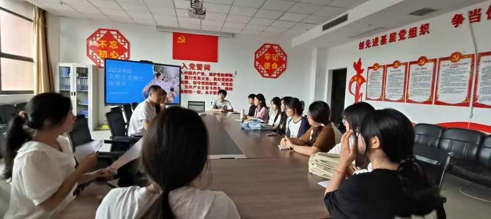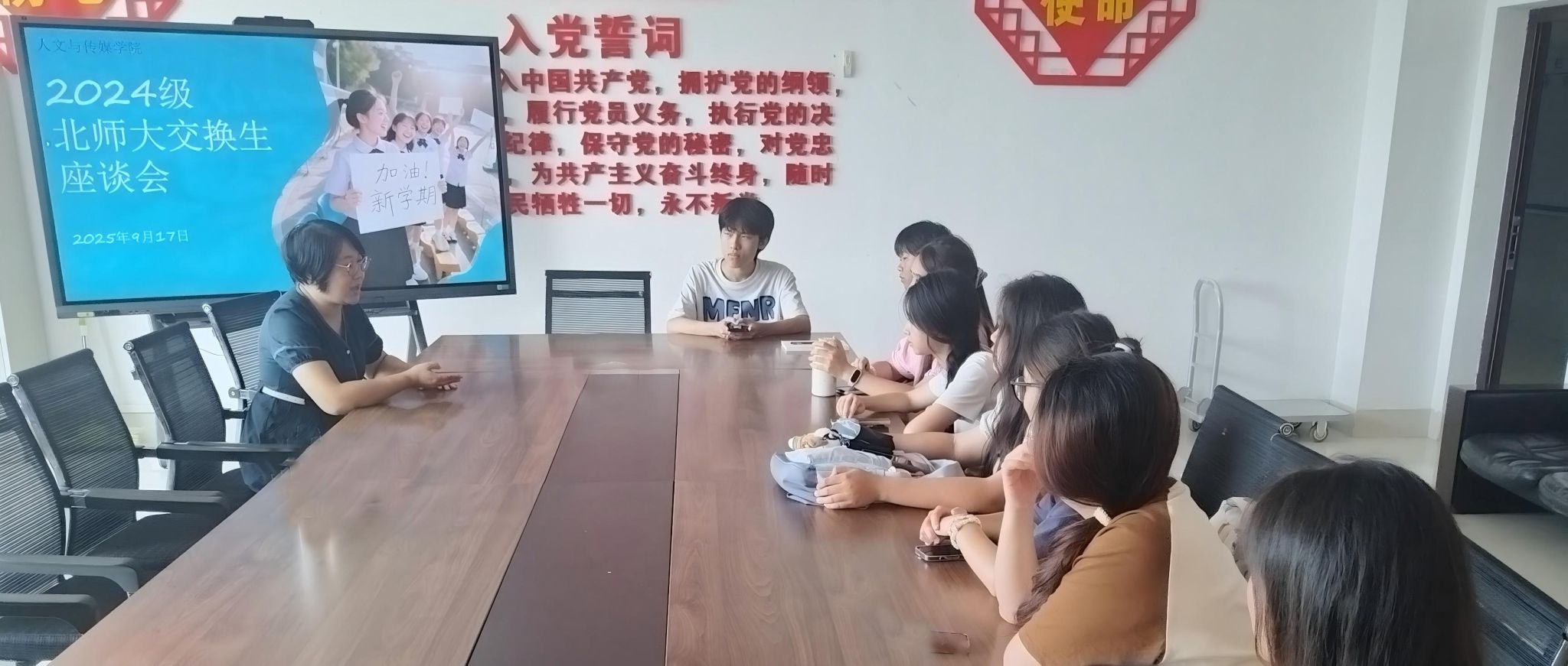 为深入贯彻落实“立德树人”根本任务,切实做好交流生返校后学习生活等方面的衔接与服务工作,2025年9月17日,人文与传媒学院在执文楼221会议室召开2024级赴北师大(珠海校区)交流生返校座谈会。座谈会由学院党总支书记主持,教学科科长丁璐璐、学生科科长贾婷参加会议。
