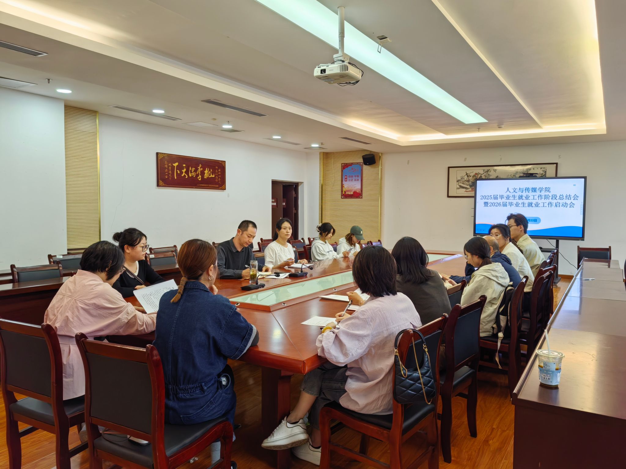 为深入贯彻落实学校2025届毕业生就业工作阶段总结暨2026届毕业生就业工作部署会会议要求,全面启动和有序推进学院2026届毕业生就业工作,人文与传媒学院于2025年9月22日下午在执文楼215会议室组织召开学院2026届毕业生就业工作启动会。学院党政领导班子成员、学生科科长贾婷、教学科科长丁璐璐、2022级(2026届)毕业班班主任贾婷、刘大涛、李竞,学院就业工作具体负责人刘俊、2022级毕业班各班班长及团支书共同参加了会议。会议由学院党总支书记丁亮主持。