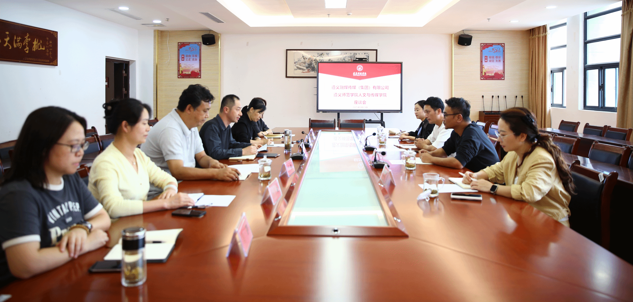 9月23日,人文与传媒学院与遵义融媒传媒(集团)有限公司(以下简称“遵义融媒集团”)及其旗下三家子公司(遵义融媒传媒媒体资源运营有限公司、遵义融媒活动会展有限公司、遵义融媒文化拓展有限公司)相关负责人在执文楼215会议室就进一步加强校企合作、产教融合,共同探索传媒人才培养新模式开展交流座谈,人文与传媒学院班子成员美术学院党总支副书记李强、学院党政办主任吴静、播音专业负责人王春明参加会议。会议由学院院长罗宏梅主持。