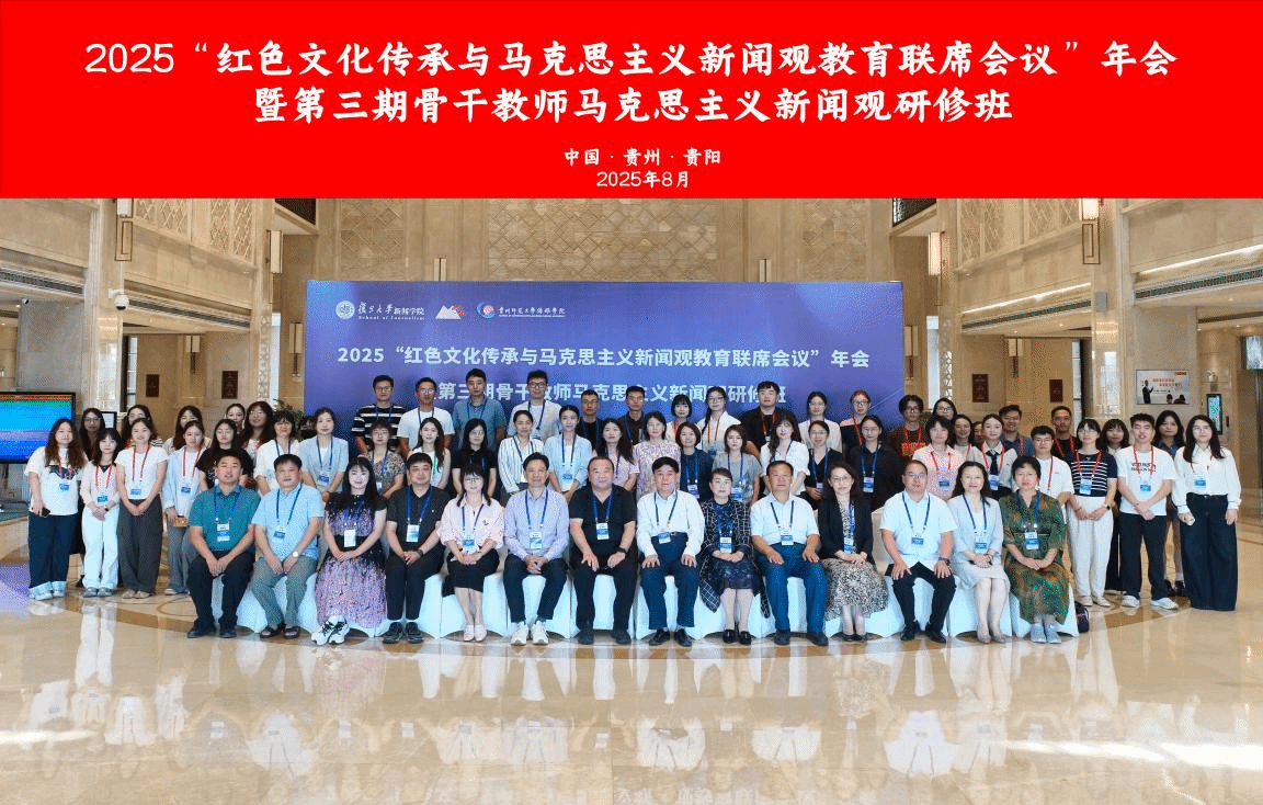 在遵义会议召开90周年之际,8月25日—28日,2025“红色文化传承与马克思主义新闻观教育联席会议”年会暨第三期骨干教师马克思主义新闻观研修班在贵阳、遵义举办。研修班由红色文化传承与马克思主义新闻观教育联席会议、复旦大学新闻学院、贵州师范大学传媒学院联合主办,复旦大学马克思主义新闻观教学与研究基地承办。研修班旨在以红色文化为纽带,深入学习贯彻习近平文化思想,坚守马克思主义新闻观,进一步提升全国新闻院校马克思主义新闻观骨干教师的教学科研水平,传承革命精神,汲取奋进力量,切实履行做好党的新闻工作人才培养的使命担当。