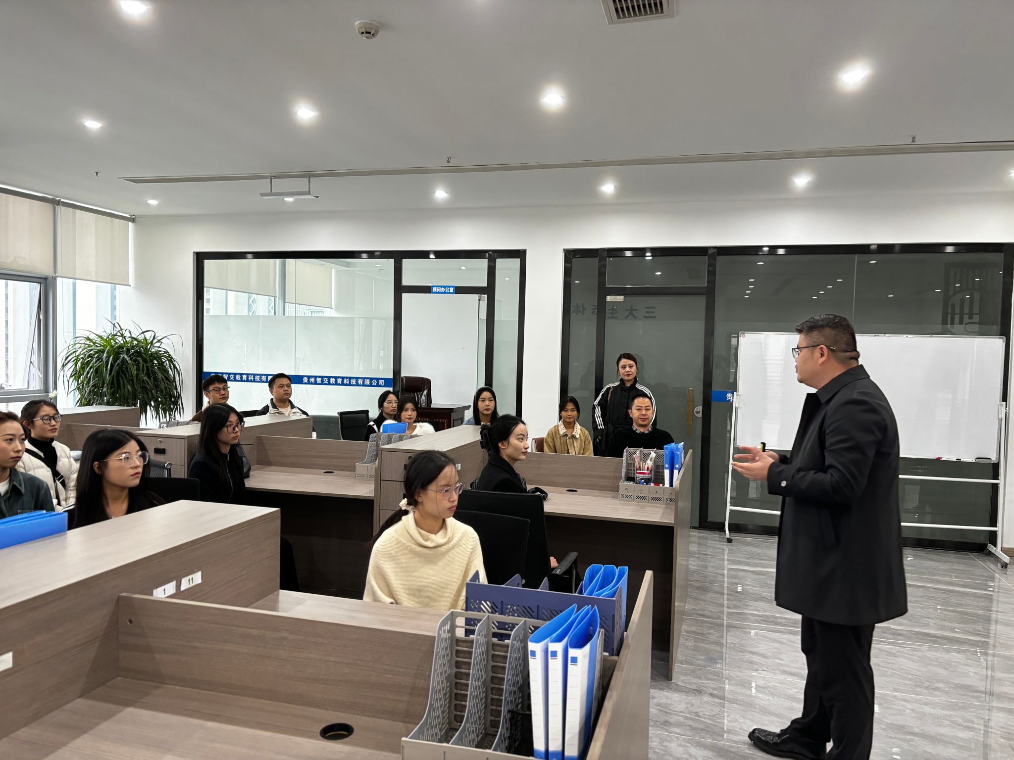 为深入贯彻落实高校毕业生就业工作部署,拓宽毕业生就业渠道,加强校企合作,2025年10月20日下午,人文与传媒学院党总支书记丁亮、学生科科长兼2022级毕业班班主任贾婷带领我院2022级汉语言文学专业、秘书学专业近20名学生,前往贵州智交教育有限公司进行访企拓岗交流活动。