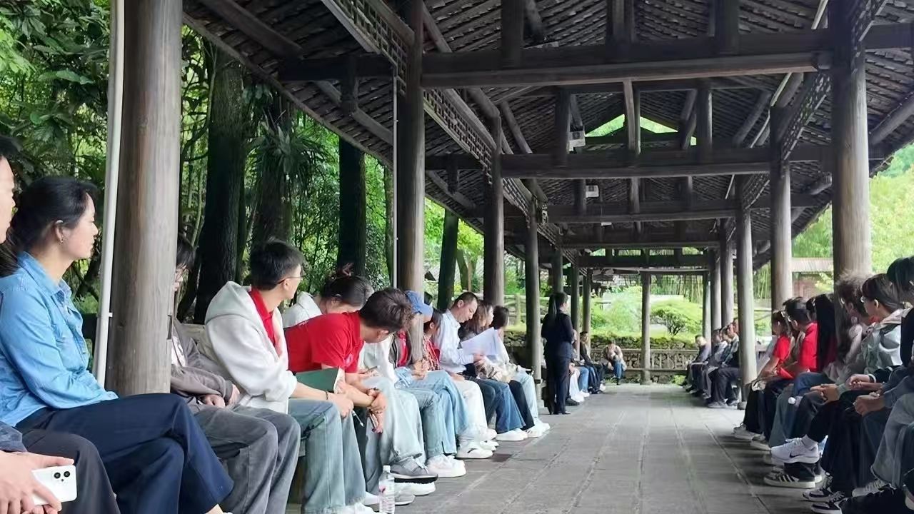 这份亮眼成绩的取得,离不开一次沉浸式的红色实践。2025年5月29日,为深化爱国主义教育、传承红色基因,我院党总支书记丁亮、院长罗宏梅带领全院师生代表共50人,赴全国爱国主义教育示范基地苟坝会议会址,开展“红色文化”阅读分享与“读懂中国”主题采风活动:师生们循着革命先辈足迹参观苟坝会议会址,在文物与史料中感悟共产党人的勇气与智慧;在陈列馆广场以《七律·长征》等红色诗词朗诵,让青春声音与历史回响交织;邀请“五老”代表陈遵平教授现场访谈,从苟坝会议的时代意义中汲取精神力量;还走进了花茂村,在“找到乡愁”的美丽乡村里,直观感受乡村振兴的时代新貌。这场“观、诵、听、访、感”的立体体验,为学子们的征文创作厚植了情感根基、积累了鲜活素材,让文字有了实践的温度与历史的深度。