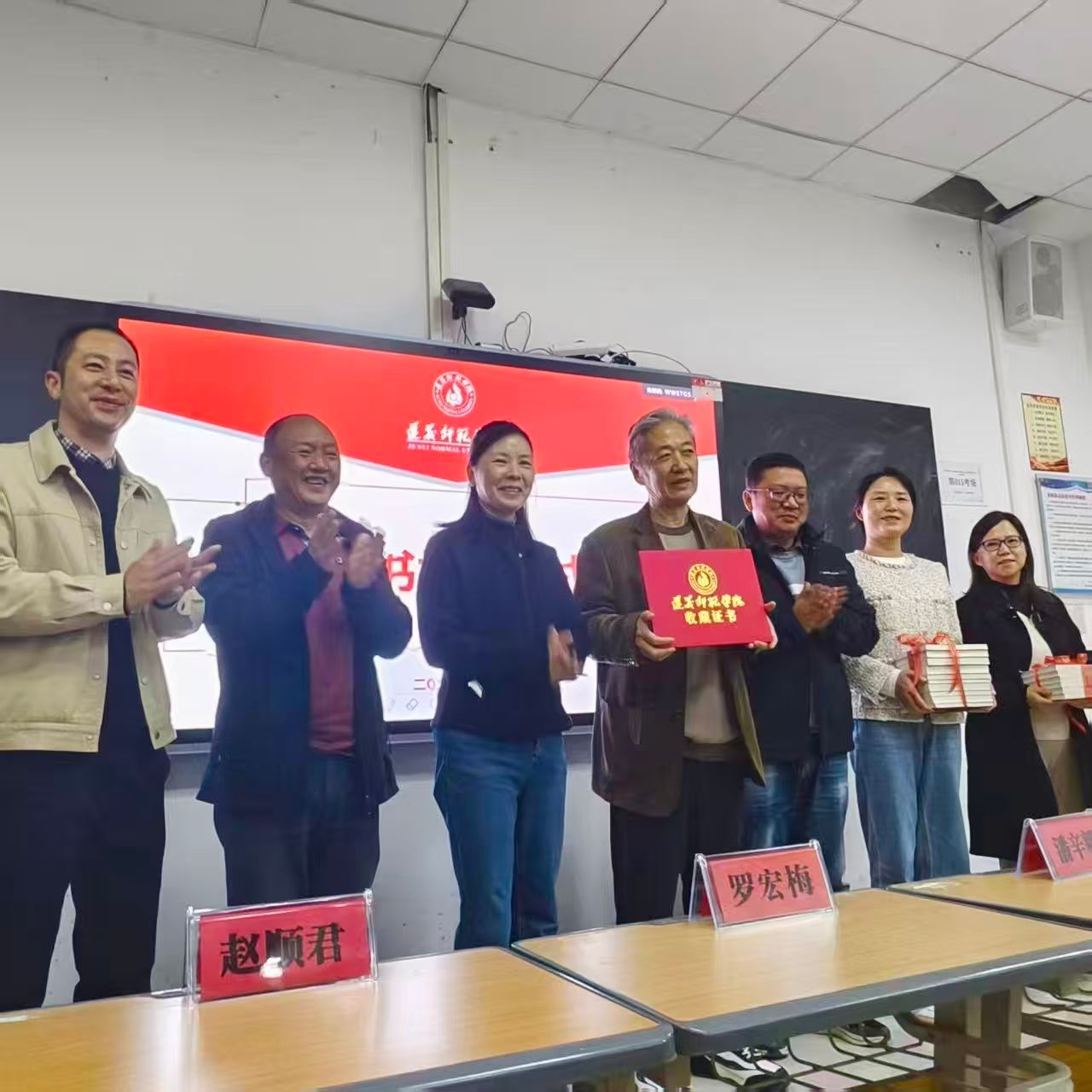 下午18时40分,捐赠仪式在党总支书记丁亮的主持下开始。院长罗宏梅向在场师生隆重介绍了潘辛毅教授,并深情回顾了周帆老校长、潘辛毅老主任心系教育、泽被后学的崇高精神。此次捐赠的图书均为周帆老校长牵头编写并珍藏的珍贵文献,不仅丰富了学院资料中心的馆藏,更成为连接学术传统与青年学子的文化桥梁。