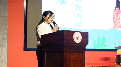 毕业生代表胡天群上台发表欢送会致辞,表达了对遵义师范学院的不舍和对毕业生的祝福。