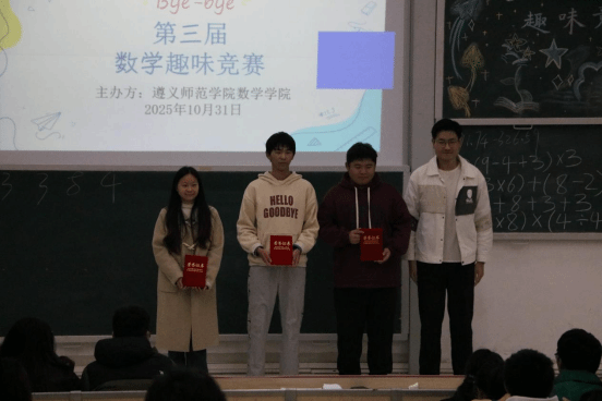 此次竞赛通过初赛、复赛和决赛环节,为数学爱好者搭建了交流切磋的平台,更点燃了遵师学子们探索数学奥秘的热情,让大家在思维的碰撞中体会到数学的严谨之美与实战应用价值,为校园学术氛围注入了蓬勃活力。至此,“青春师院·一院一精品”第三届趣味数学竞赛活动圆满结束,期待与大家明年再见。