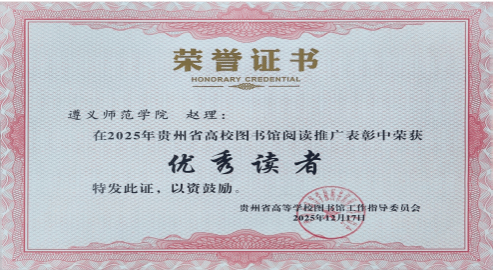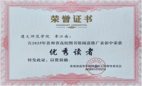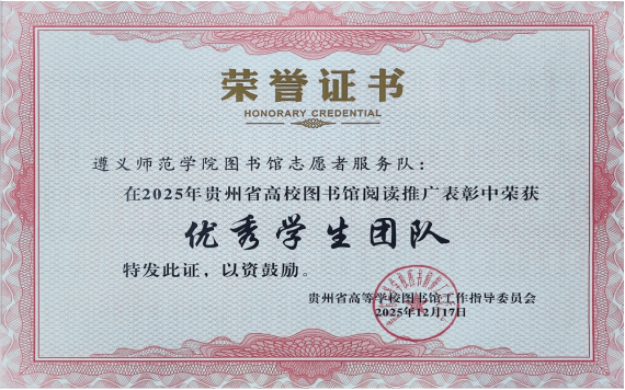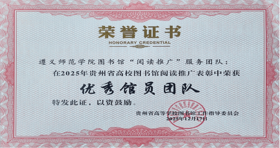 图书馆在2025年贵州省高校图书馆年会上荣获贵州省高校“优秀馆员团队”、贵州省高校阅读推广“优秀学生团队”、贵州省高校“优秀读者”三项荣誉表彰共12人次。