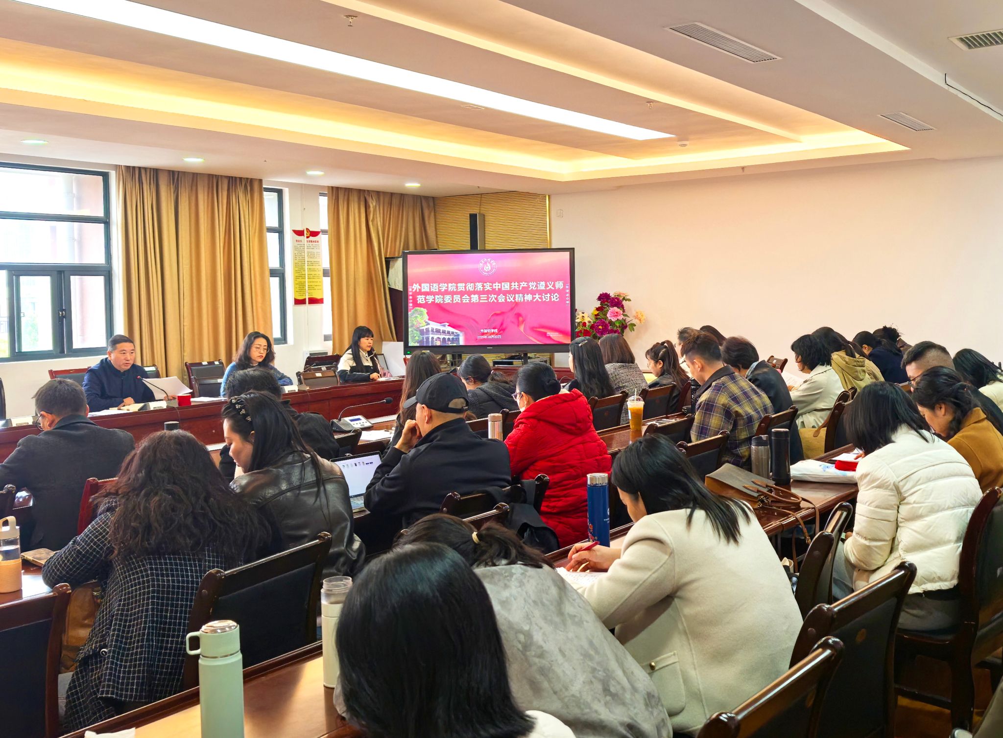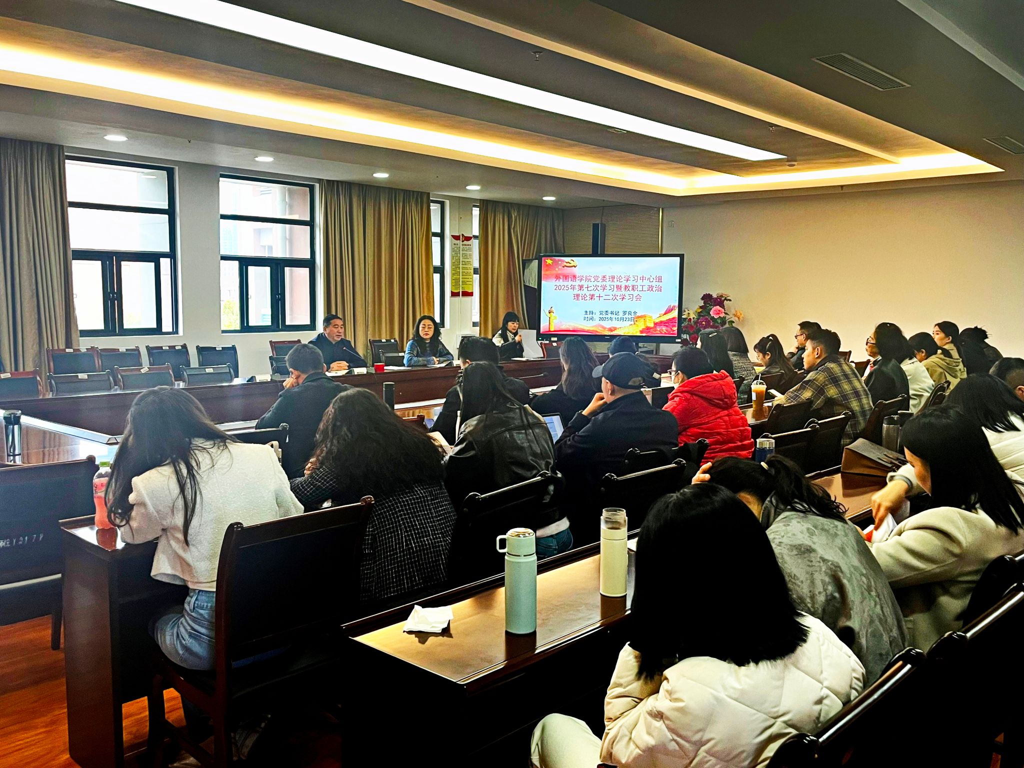 2025年10月23日,学院在执文楼415召开党委理论学习中心组2025年第七次学习暨教职工政治理论第十二次学习会议。学院党委书记罗良金主持,党员教职工参加,非党员教职工列席。