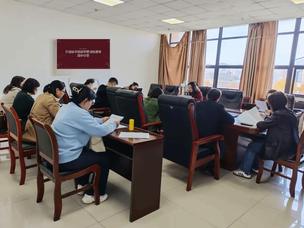 为推进教学管理规范化建设,提升人才培养质量,11月14日,外国语学院组织召开教学管理制度专题研讨会。会议由教学科陈瑶主持,院长杨毓隽、教学督导、教研室主任、专业负责人、骨干教师及教学科全体工作人员参会。会议围绕《外国语学院教研室管理办法(修订)》等四项制度和方案开展集中研讨,广泛听取意见建议,为制度的最终完善与落地实施奠定基础。