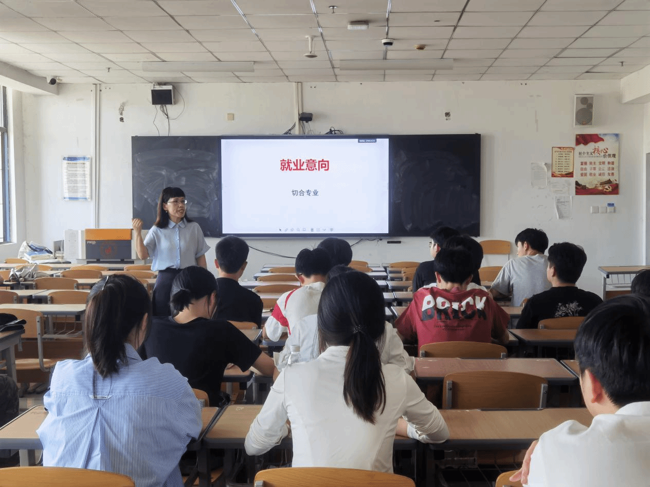 在就业指导环节,吴英书记先通过现场交流的方式,逐一了解同学们对就业地区、岗位类型(如研发、技术支持、运维等)的意向,随后结合学院近年就业数据,针对性介绍了电子专业的核心就业方向——包括通信技术、人工智能、集成电路设计等领域,并提醒同学们:“想提升就业竞争力,既要强化编程、电路设计等专业技能,也可以通过实习、学科竞赛积累实践经验,为求职加分。”