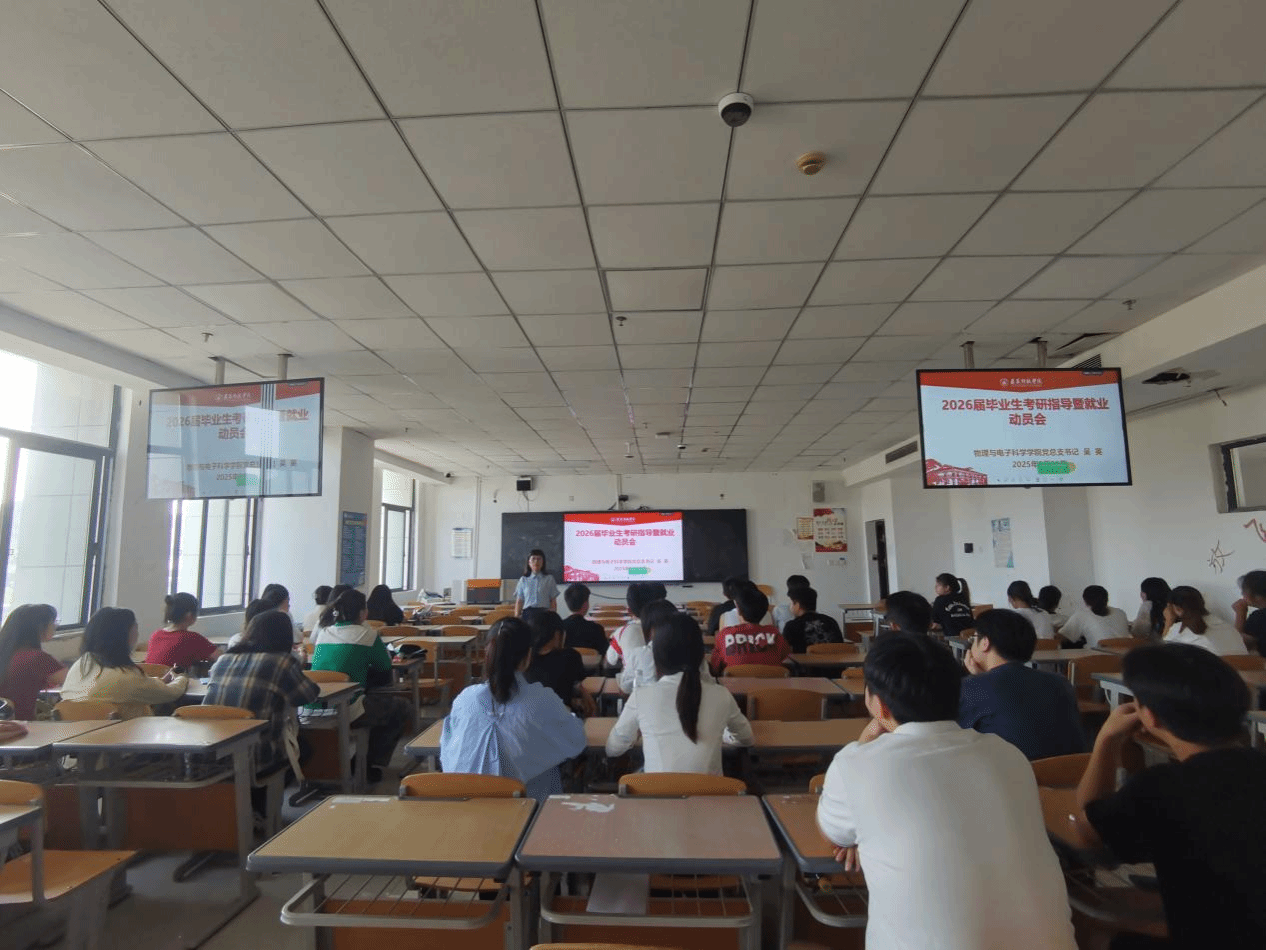 2025年10月11日下午,物理与电子科学学院聚焦26届电子信息科学与技术专业毕业生升学就业的需求,精心组织考研指导暨就业动员专题会。学院党总支书记吴英担任主讲人,电子系主任杨艳军老师全程参会,与同学们共同探讨未来发展方向。