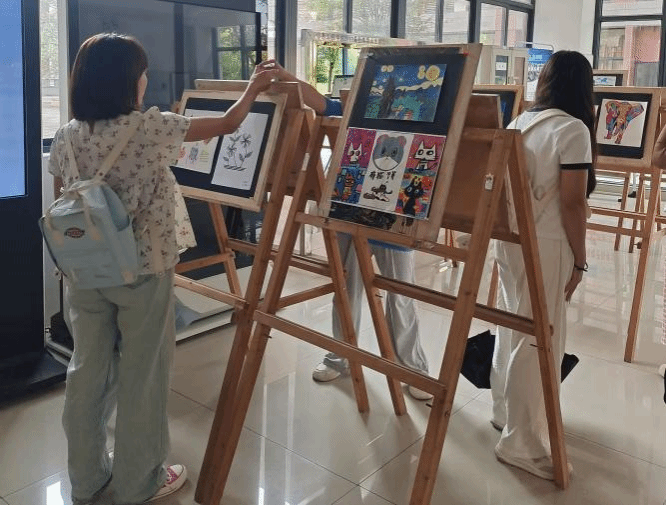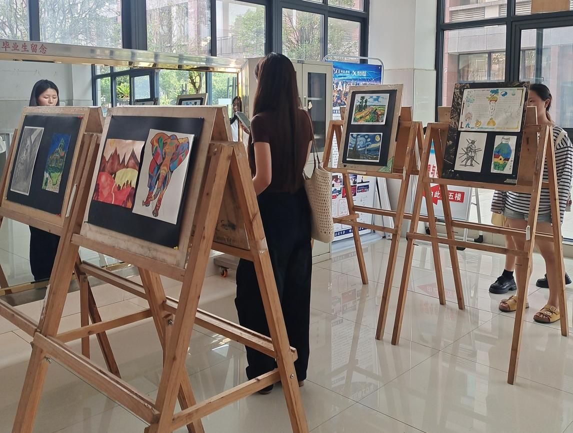 在展览现场,一幅幅精美的作品整齐地陈列在展板上,吸引了大量师生参观。同学们相互交流着自己的感受和见解,分享着对艺术的热爱和理解。